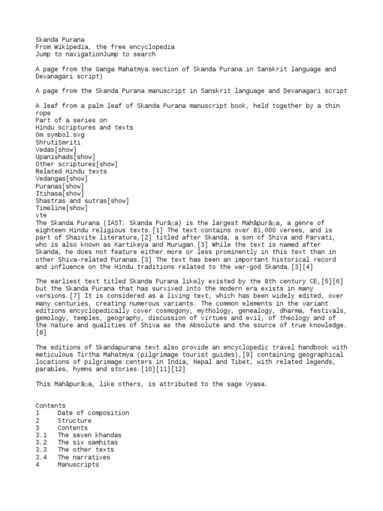 There are a number of texts and manuscripts that bear the title Skanda Purana.[5]