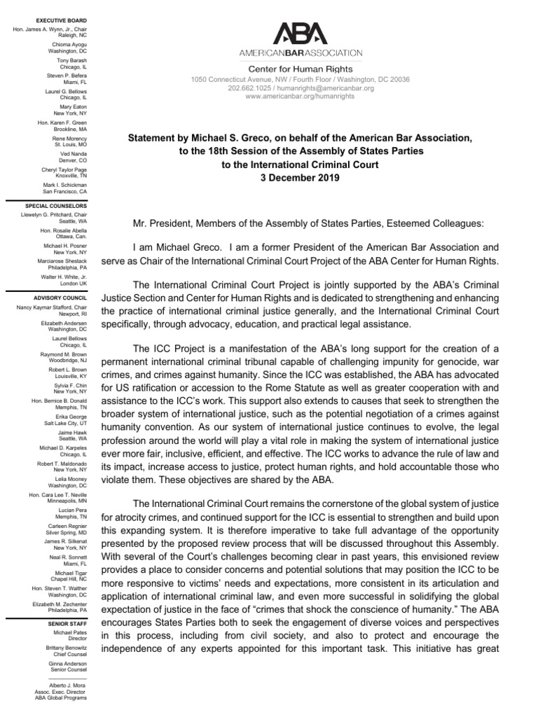 C4> D4(8+E('*/ C(?A(48 &F *5( -88(?A6G &F H*7*(8 D74*+(8/ I8*((?(E %&66(79,(8J K 7? C+)57(6 L4()&> K 7? 7 F&4?(4 D4(8+E('* &F *5( -?(4+)7' M74 -88&)+7*+&' 7'E 8(4.( 78 %57+4 &F *5( K'*(4'7*+&'76 %4+?+'76 %&,4* D4&N()* &F *5( -M- %('*(4 F&4 O,?7' P+95*8> Q5( K'*(4'7*+&'76 %4+?+'76 %&,4* D4&N()* +8 N&+'*6G 8,RR&4*(E AG *5( -M-S8 %4+?+'76 T,8*+)( H()*+&' 7'E %('*(4 F&4 O,?7' P+95*8 7'E +8 E(E+)7*(E *& 8*4('9*5('+'9 7'E ('57')+'9 *5( R47)*+)( &F +'*(4'7*+&'76 )4+?+'76 N,8*+)( 9('(4766G/ 7'E *5( K'*(4'7*+&'76 %4+?+'76 %&,4* 8R()+F+)766G/ *54&,95 7E.&)7)G/ (E,)7*+&'/ 7'E R47)*+)76 6(976 788+8*7')(> Q5( K%% D4&N()* +8 7 ?7'+F(8*7*+&' &F *5( -M-S8 6&'9 8,RR&4* F&4 *5( )4(7*+&' &F 7 R(4?7'('* +'*(4'7*+&'76 )4+?+'76 *4+A,'76 )7R7A6( &F )5766('9+'9 +?R,'+*G F&4 9('&)+E(/ B74 )4+?(8/ 7'E )4+?(8 797+'8* 5,?7'+*G> H+')( *5( K%% B78 (8*7A6+85(E/ *5( -M- 578 7E.&)7*(E F&4 UH 47*+F+)7*+&' &4 7))(88+&' *& *5( P&?( H*7*,*( 78 B(66 78 94(7*(4 )&&R(47*+&' B+*5 7'E 788+8*7')( *& *5( K%%S8 B&4V> Q5+8 8,RR&4* 768& (W*('E8 *& )7,8(8 *57* 8((V *& 8*4('9*5(' *5( A4&7E(4 8G8*(? &F +'*(4'7*+&'76 N,8*+)(/ 8,)5 78 *5( R&*('*+76 '(9&*+7*+&' &F 7 )4+?(8 797+'8* 5,?7'+*G )&'.('*+&'> -8 &,4 8G8*(? &F +'*(4'7*+&'76 N,8*+)( )&'*+',(8 *& (.&6.(/ *5( 6(976 R4&F(88+&' 74&,'E *5( B&46E B+66 R67G 7 .+*76 4&6( +' ?7V+'9 *5( 8G8*(? &F +'*(4'7*+&'76 N,8*+)( (.(4 ?&4( F7+4/ +')6,8+.(/ (FF+)+('*/ 7'E (FF()*+.(> Q5( K%% B&4V8 *& 7E.7')( *5( 4,6( &F 67B 7'E +*8 +?R7)*/ +')4(78( 7))(88 *& N,8*+)(/ R4&*()* 5,?7' 4+95*8/ 7'E 5&6E 7))&,'*7A6( *5&8( B5& .+&67*( *5(?> Q5(8( &AN()*+.(8 74( 8574(E AG *5( -M-> Q5( K'*(4'7*+&'76 %4+?+'76 %&,4* 4(?7+'8 *5( )&4'(48*&'( &F *5( 96&A76 8G8*(? &F N,8*+)( F&4 7*4&)+*G )4+?(8/ 7'E )&'*+',(E 8,RR&4* F&4 *5( K%% +8 (88('*+76 *& 8*4('9*5(' 7'E A,+6E ,R&' *5+8 (WR7'E+'9 8G8*(?> K* +8 *5(4(F&4( +?R(47*+.( *& *7V( F,66 7E.7'*79( &F *5( &RR&4*,'+*G R4(8('*(E AG *5( R4&R&8(E 4(.+(B R4&)(88 *57* B+66 A( E+8),88(E *54&,95&,* *5+8 -88(?A6G> 1+*5 8(.(476 &F *5( %&,4*S8 )5766('9(8 A()&?+'9 )6(74 +' R78* G(748/ *5+8 ('.+8+&'(E 4(.+(B R4&.+E(8 7 R67)( *& )&'8+E(4 )&')(4'8 7'E R&*('*+76 8&6,*+&'8 *57* ?7G R&8+*+&' *5( K%% *& A( ?&4( 4(8R&'8+.( *& .+)*+?8S '((E8 7'E (WR()*7*+&'8/ ?&4( )&'8+8*('* +' +*8 74*+),67*+&' 7'E 7RR6+)7*+&' &F +'*(4'7*+&'76 )4+?+'76 67B/ 7'E (.(' ?&4( 8,))(88F,6 +' 8&6+E+FG+'9 *5( 96&A76 (WR()*7*+&' &F N,8*+)( +' *5( F7)( &F X)4+?(8 *57* 85&)V *5( )&'8)+(')( &F 5,?7'+*G>Y Q5( -M- (')&,479(8 H*7*(8 D74*+(8 A&*5 *& 8((V *5( ('979(?('* &F E+.(48( .&+)(8 7'E R(48R()*+.(8 +' *5+8 R4&)(88/ +')6,E+'9 F4&? )+.+6 8&)+(*G/ 7'E 768& *& R4&*()* 7'E (')&,479( *5( +'E(R('E(')( &F 7'G (WR(4*8 7RR&+'*(E F&4 *5+8 +?R&4*7'* *78V> Q5+8 +'+*+7*+.( 578 94(7*