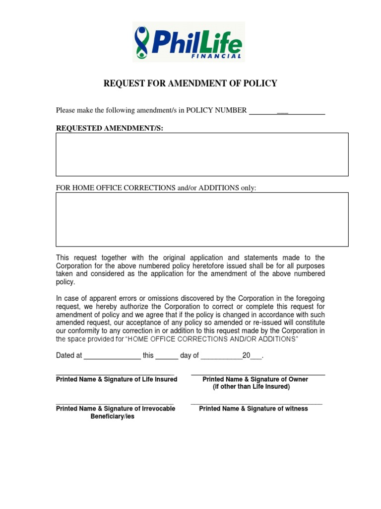 amended request, our acceptance of any policy so amended or re-issued will constitute