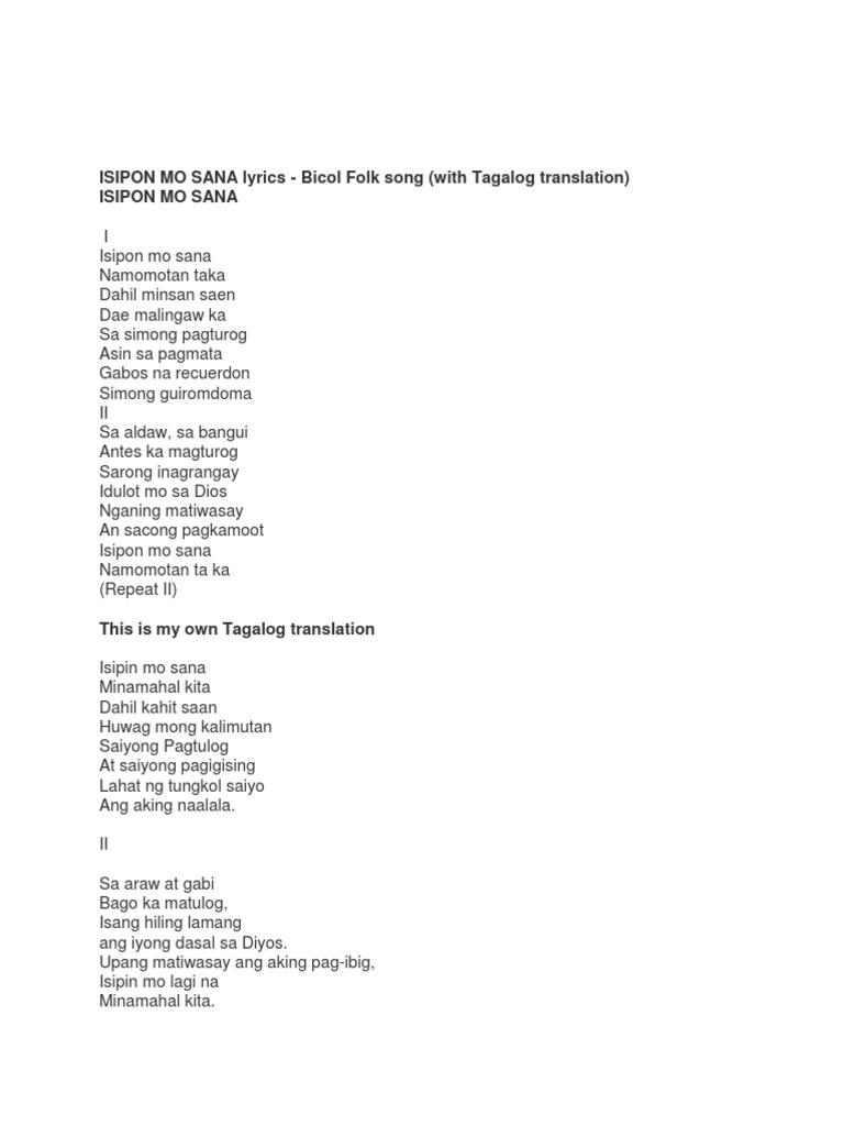 ISIPON MO SANA lyrics - Bicol Folk song (with Tagalog translation)