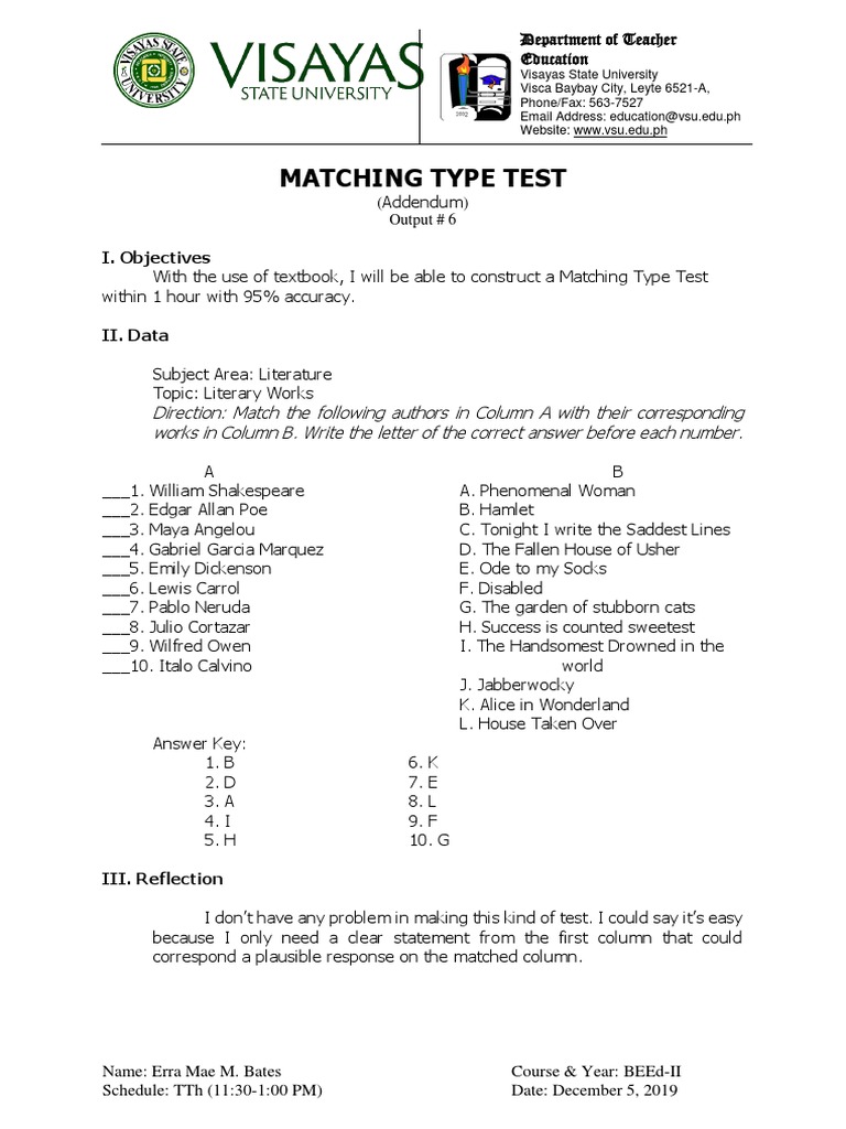 MATCHING TYPE TEST