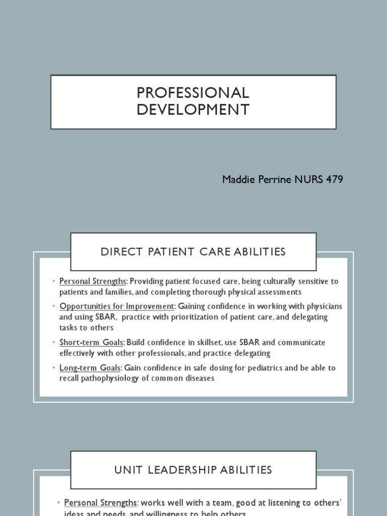 • Personal Aspirations: read nursing journals to keep up with evidence