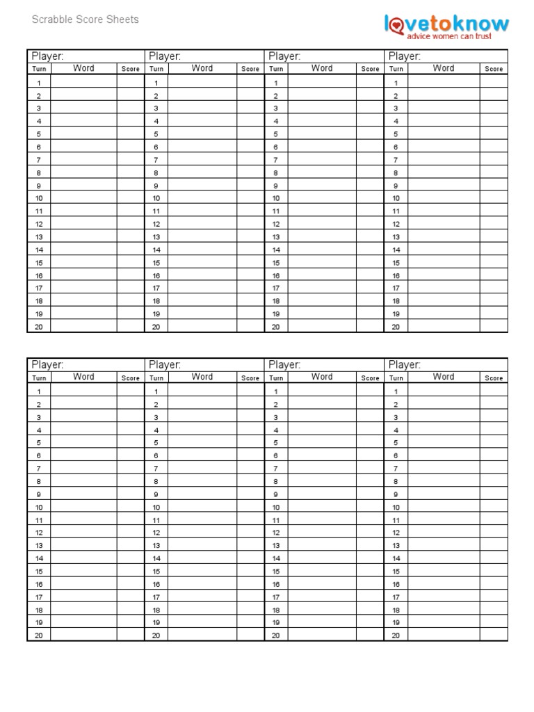 Scrabble Score Sheets