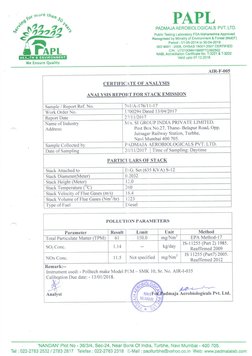 Instrument used: - Polltech make Model PEM ~ SMK 10, Sr. No. AIR-I-035