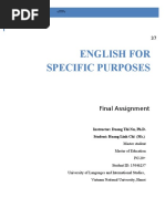 From the early 1960's, English for Specific Purposes (ESP) has grown to become one of the most prominent