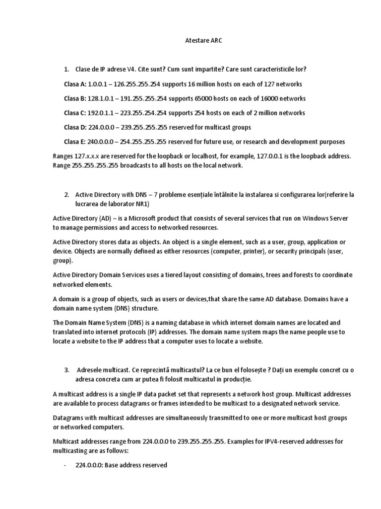 1. Clase de IP adrese V4. Cite sunt? Cum sunt impartite? Care sunt caracteristicile lor?