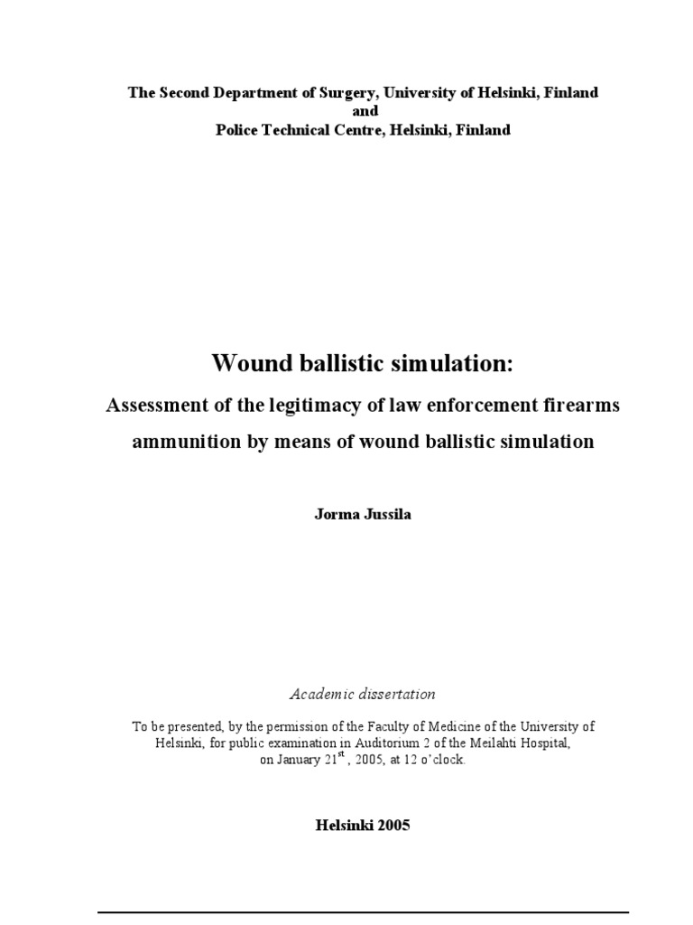 Jussila J., (2003b) Preparation and use of ballistic gelatine, Police Technical