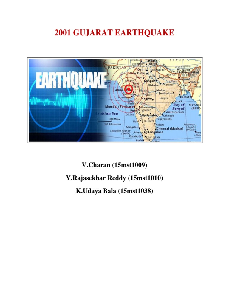 The 2001 Gujarat earthquake also known as Bhuj earthquake occurred on 26
