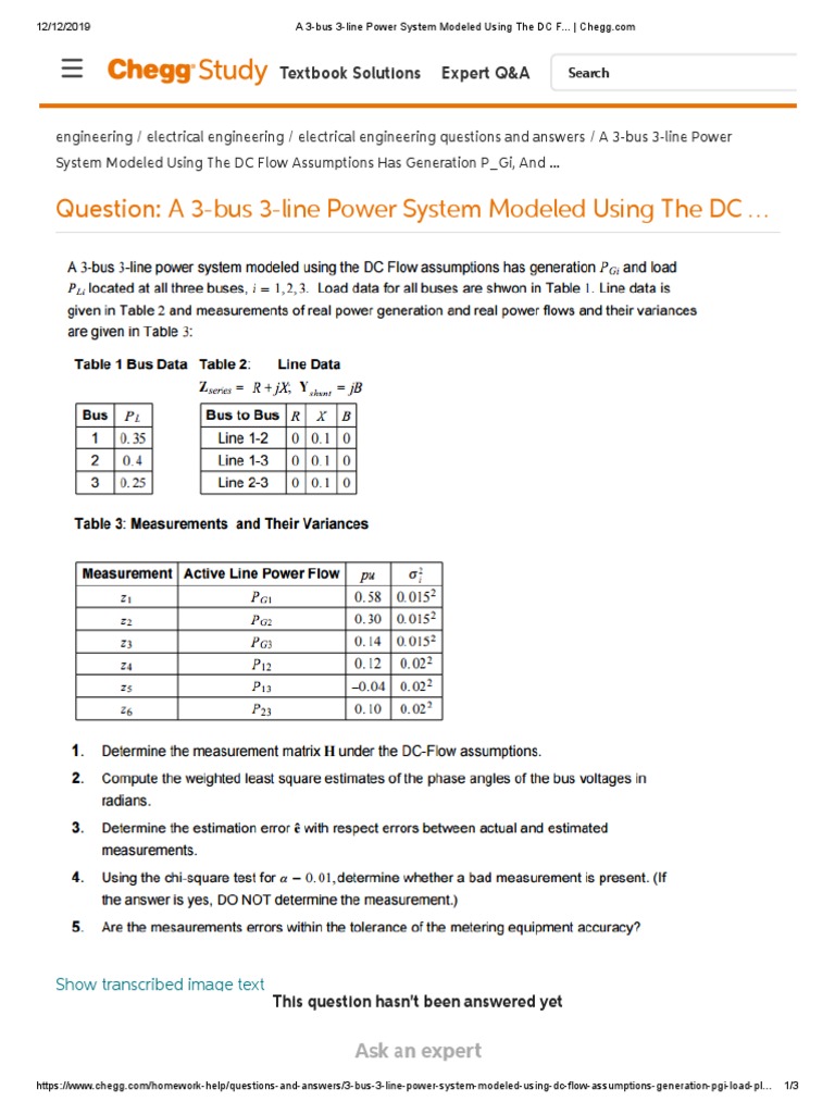 12/12/2019 A 3-bus 3-line Power System Modeled Using The DC F... | Chegg.
