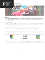 The document asks the reader to choose a color, symbol, and image that best represents an unspecified topic. It then prompts the reader to explain why they chose each representation.