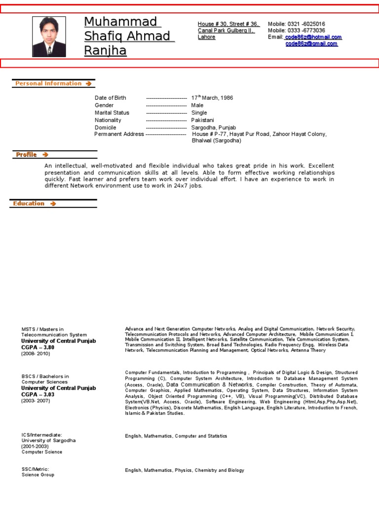 Shafiq Ahmad Lahore Email: code86z@hotmail.com