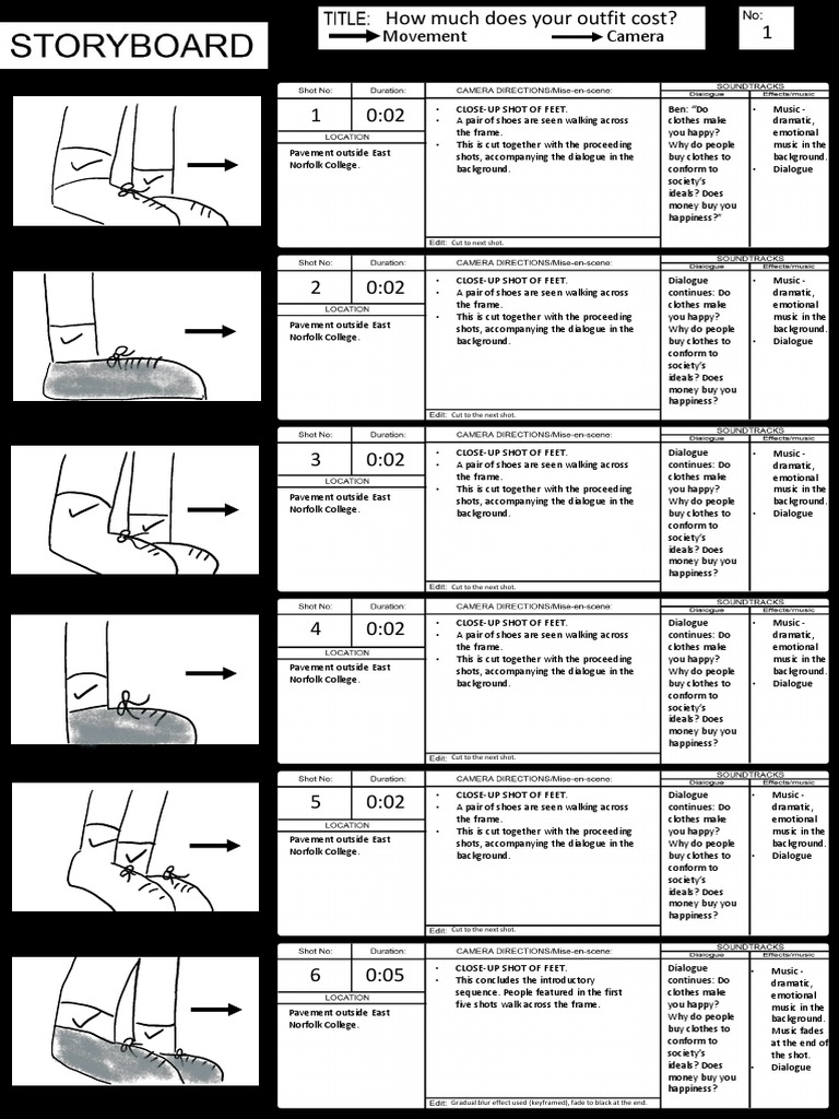 Pavement outside East shots, accompanying the dialogue in the buy clothes to background.
