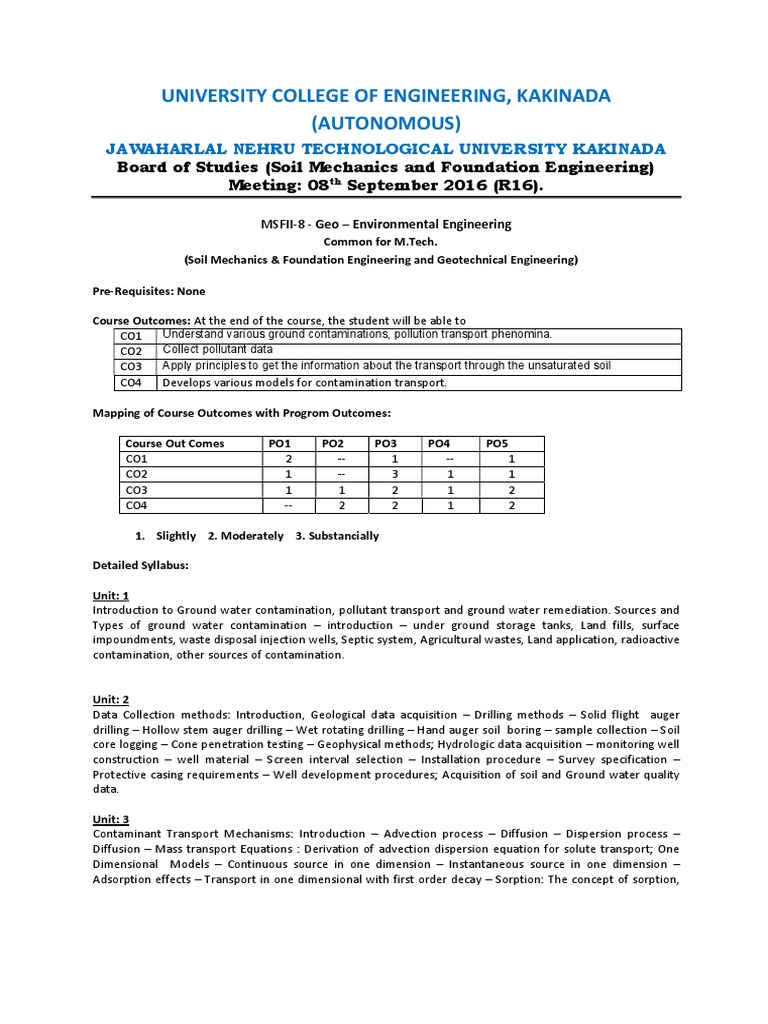 CO1 Understand various ground contaminations, pollution transport phenomina.