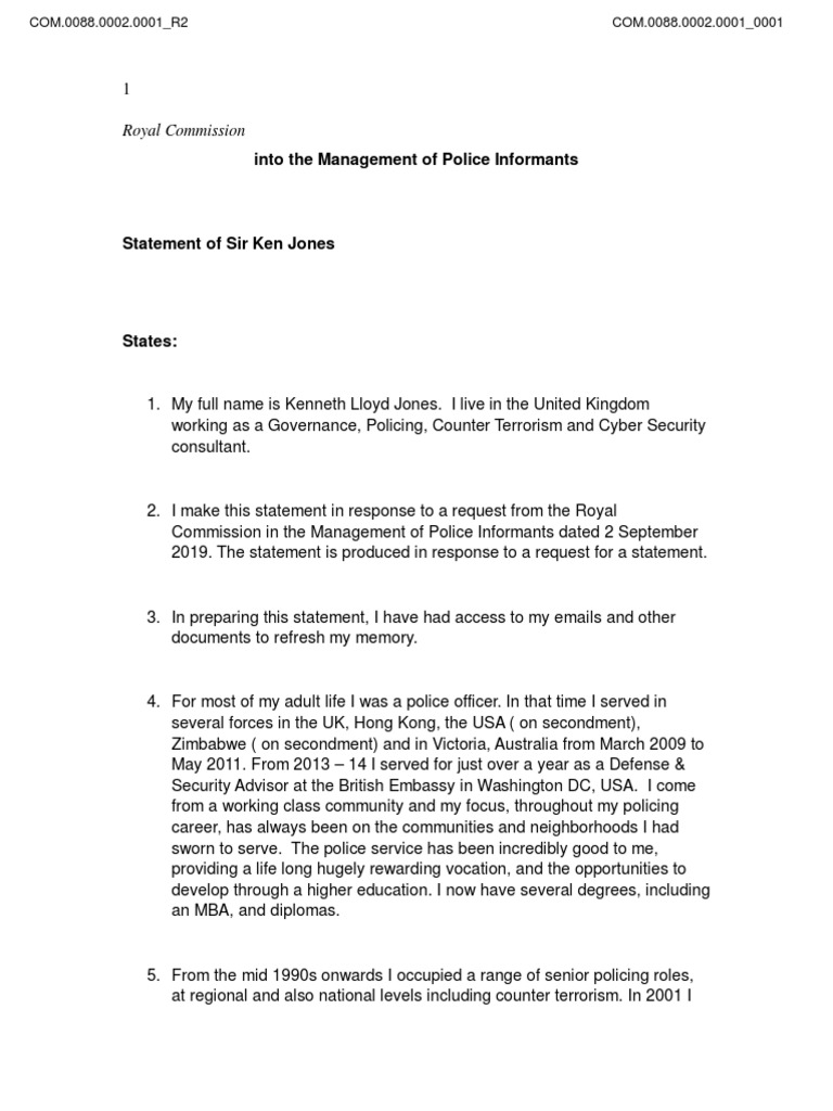 Statement of Sir Ken Jones, 7 December 2019, Tendered 13 December 2019