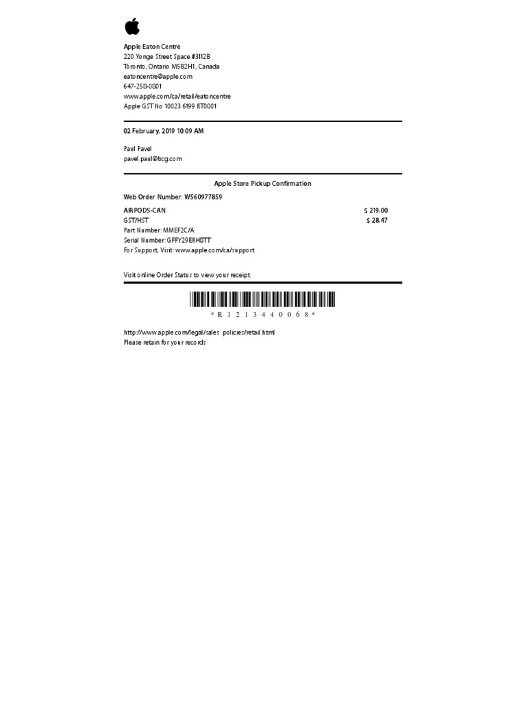 Apple Store Pickup Confirmation