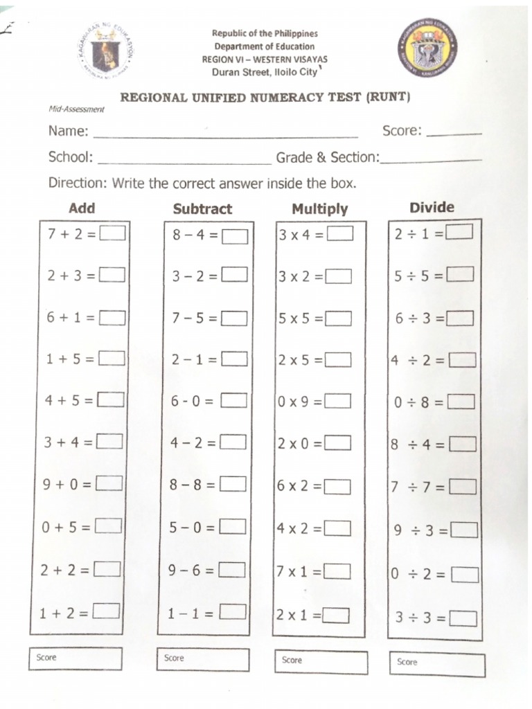 Grade-Level Numeracy Test Samples