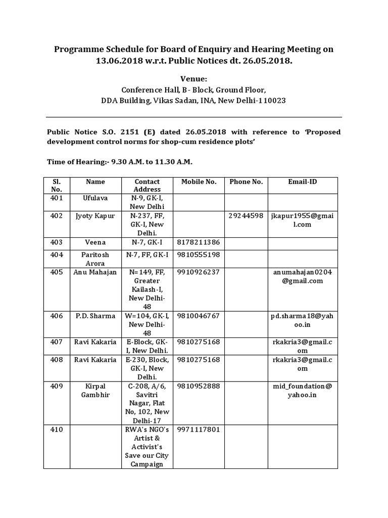 408 Ravi Kakaria E-230, Block, 9810275168 rkakria3@gmail.c