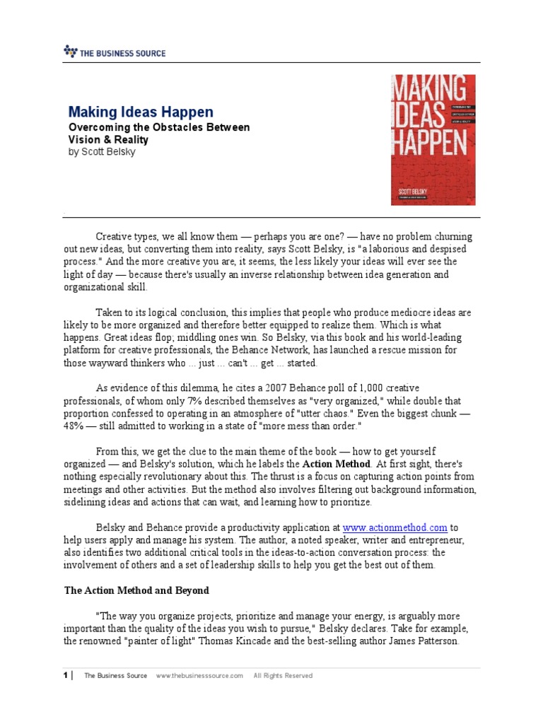well-organized is only the first step towards making ideas happen. You also need a technique for