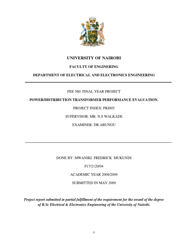 of B.Sc Electrical & Electronics Engineering of the University of Nairobi.