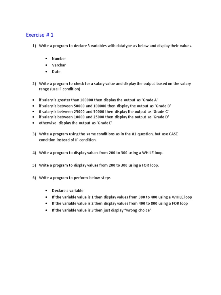 3) Write a program using the same conditions as in the #1 question, but use CASE
