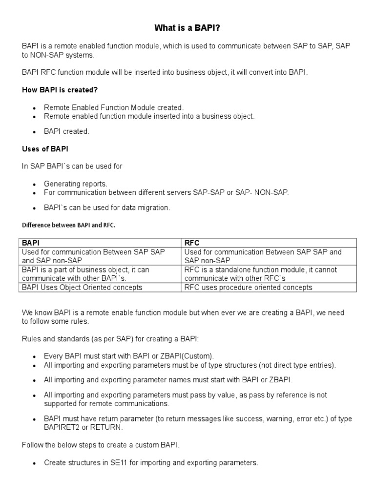 Rules and standards (as per SAP) for creating a BAPI: