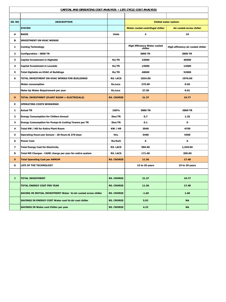 CAPITAL AND OPERATING COST ANALYSIS + LIFE CYCLE COST ANALYSIS