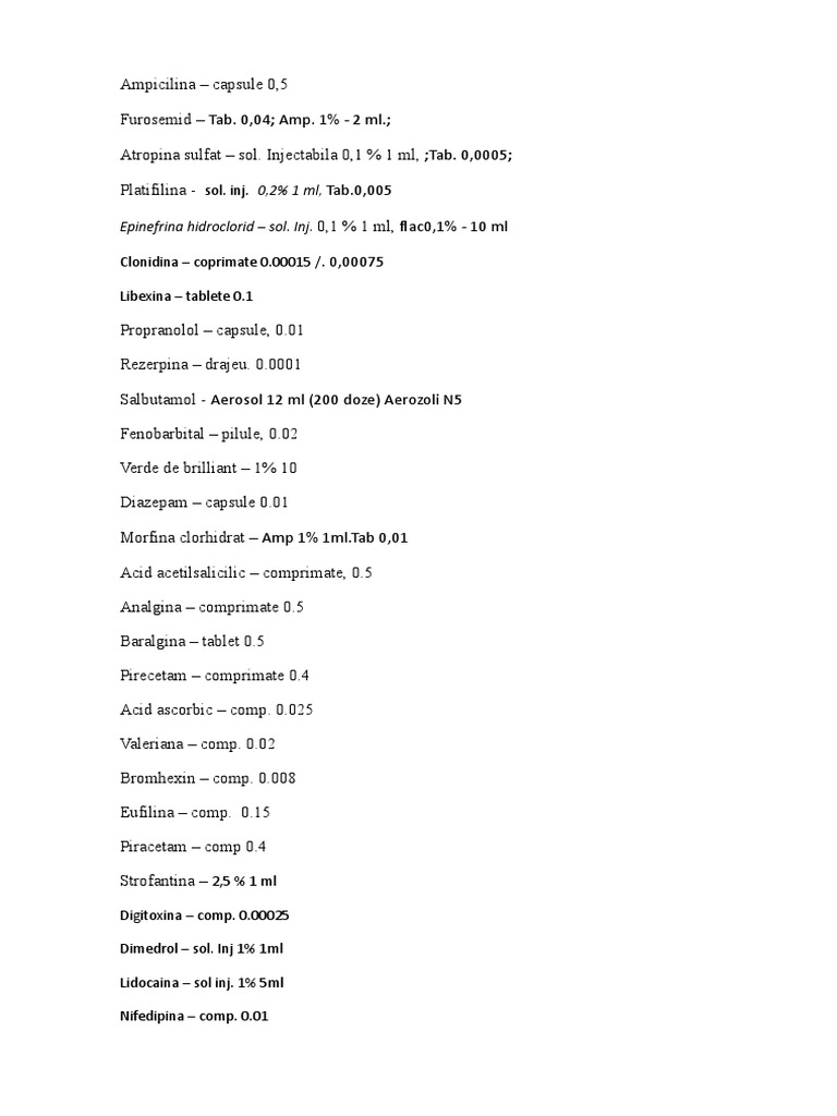 Atropina sulfat – sol. Injectabila 0,1 % 1 ml, ;Tab. 0,0005;