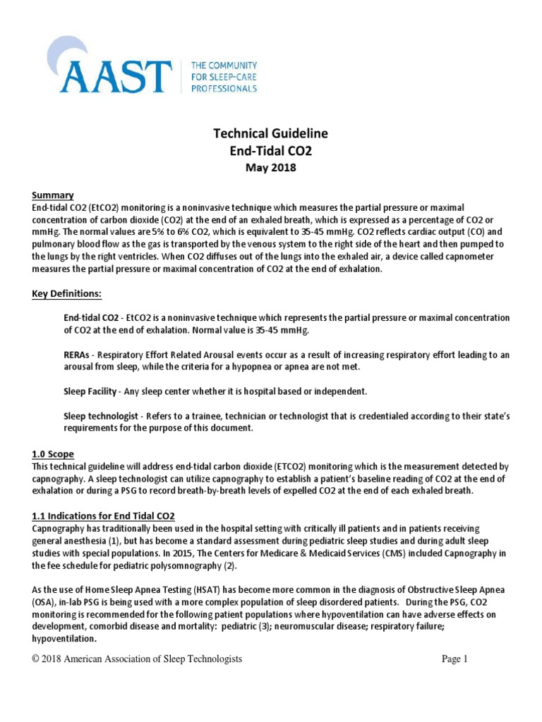 This technical guideline will address end-tidal carbon dioxide (ETCO2) monitoring which is the measurement detected by