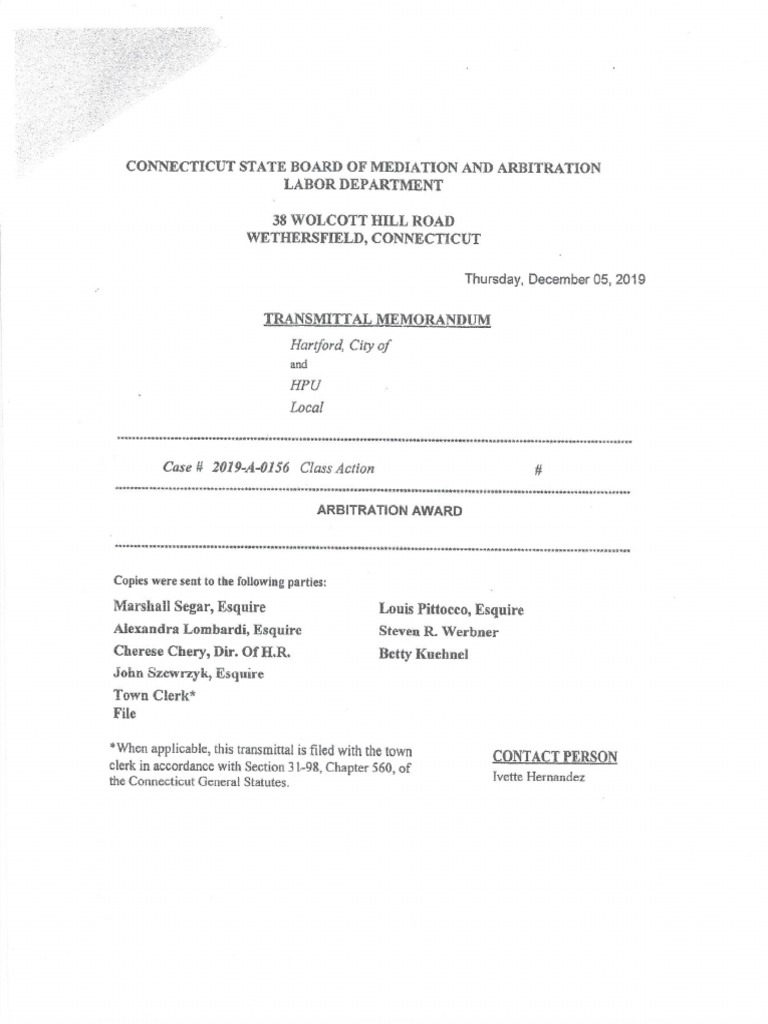 ARBITRATION DECISION / AWARD , HARTFORD POLICE UNION