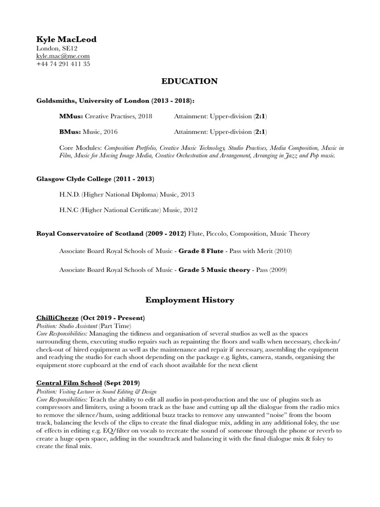 MMus: Creative Practises, 2018 Attainment: Upper-division (2:1)