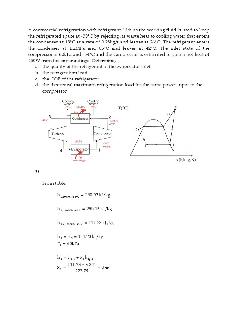 A commercial refrigeration with refrigerant-134a as the working fluid is used to keep