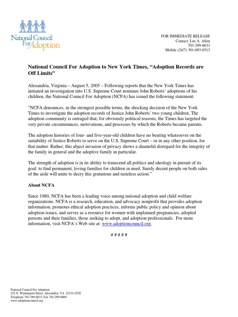 Times to investigate the adoption records of Justice John Roberts’ two young children. The