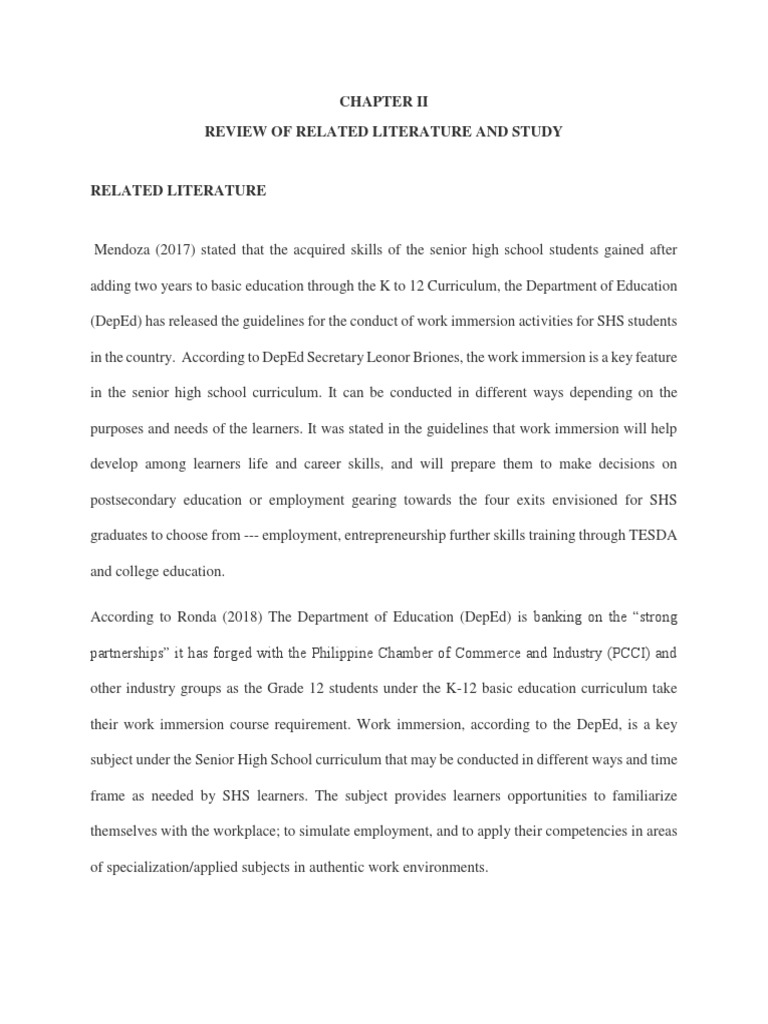 in the country. According to DepEd Secretary Leonor Briones, the work immersion is a key feature