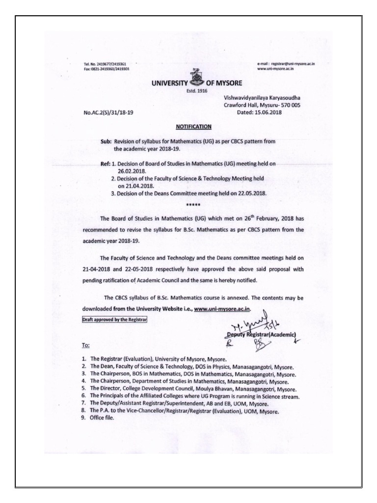 As per UGC guidelines, Academic Council of University of Mysore, in its meeting held on 21-