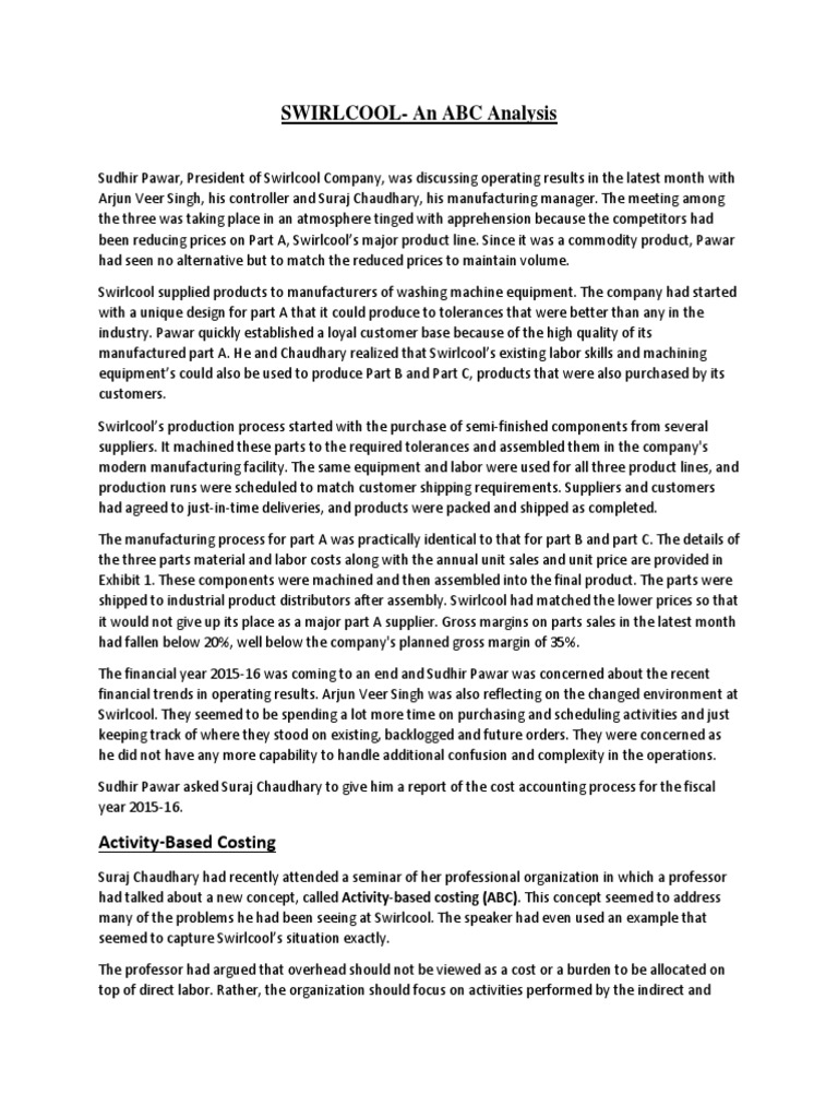 Chaudhary believed he now had the information to estimate an activity based cost model for Swirlcool.