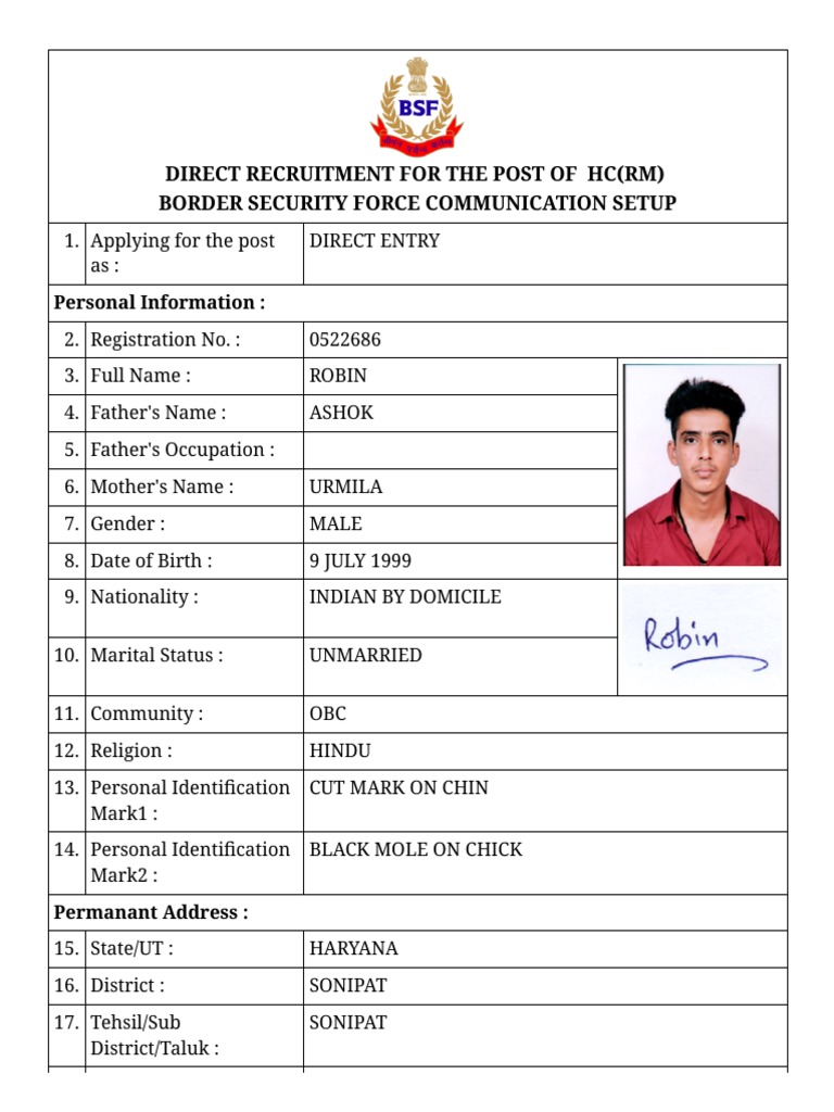 of existing data or which may induce any virus/worm or trojan in BSF recruitment