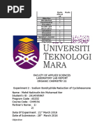1. 0.7501g of nitrobenzaldehyde was mix with 0.6mL acetophenone and 4mL of 95%