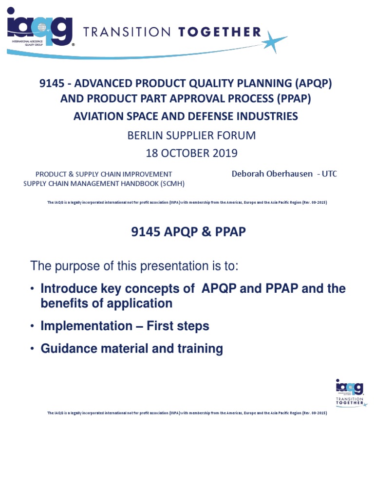The IAQG is a legally incorporated international not for profit association (INPA) with membership from the Americas, Europe and the Asia Pacific Region (Rev. 08-2015) 10