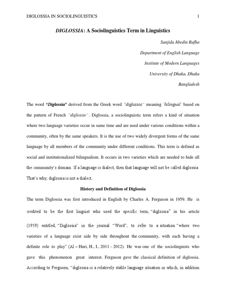 DIGLOSSIA IN SOCIOLINGUISTICS 1