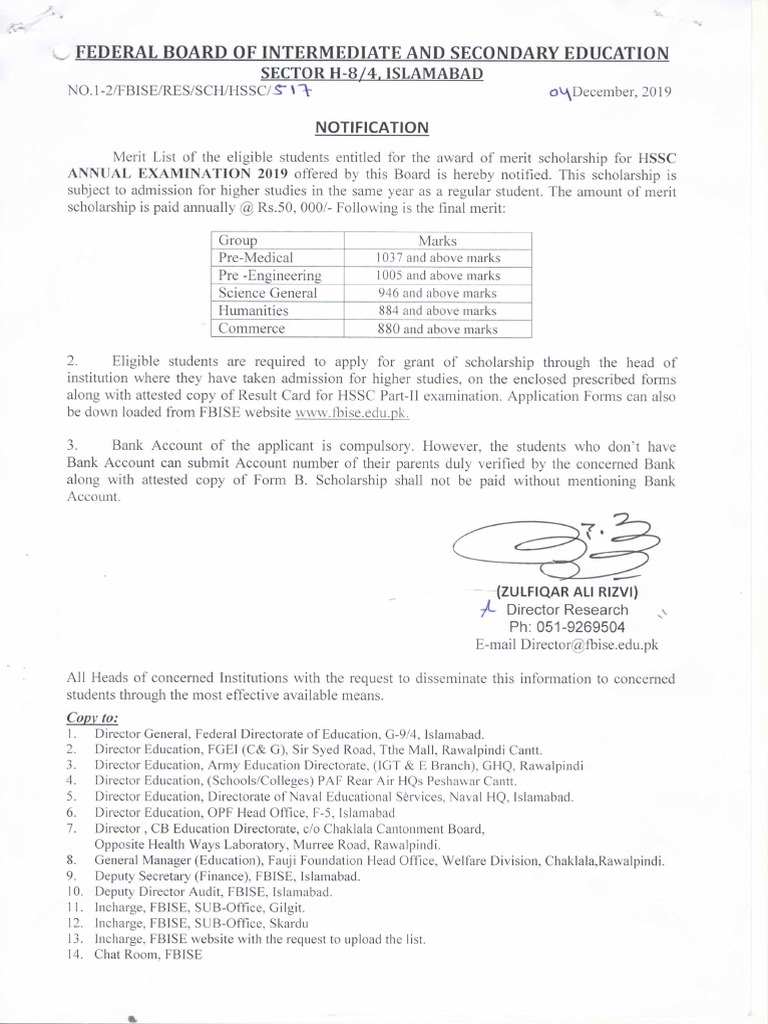 NO. 1-2/FBISE/RES/SCH/HSSC/S V7 oMDecember, 2019