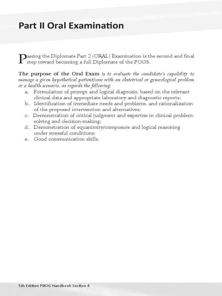 Part II Oral Examination