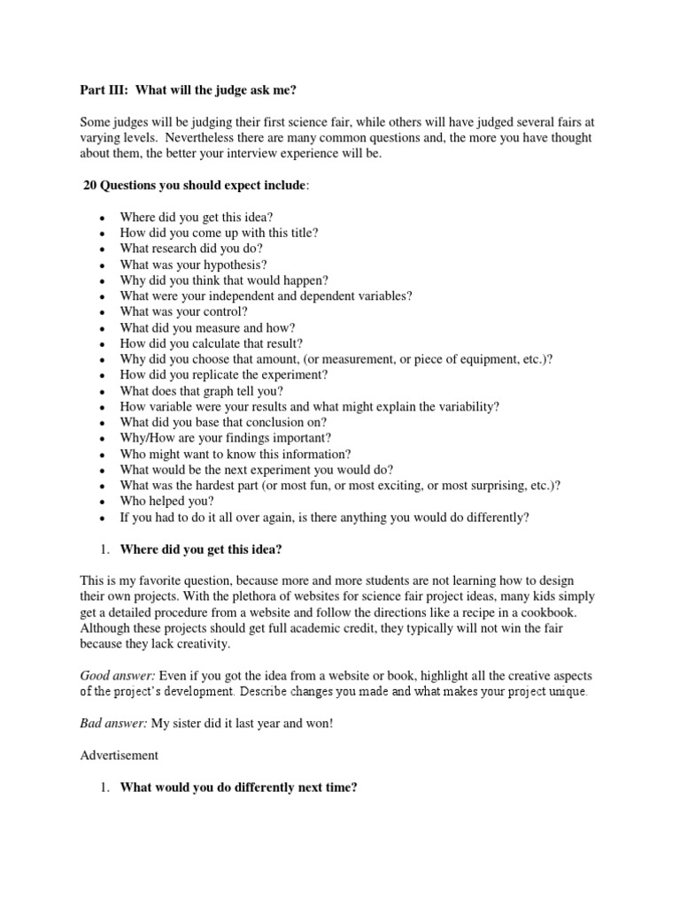 that the judges can focus on asking you questions to evaluate what you did and how much you