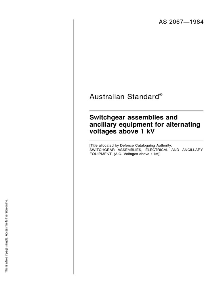 AS 2067-1984 Switchgear assemblies and ancillary equipment