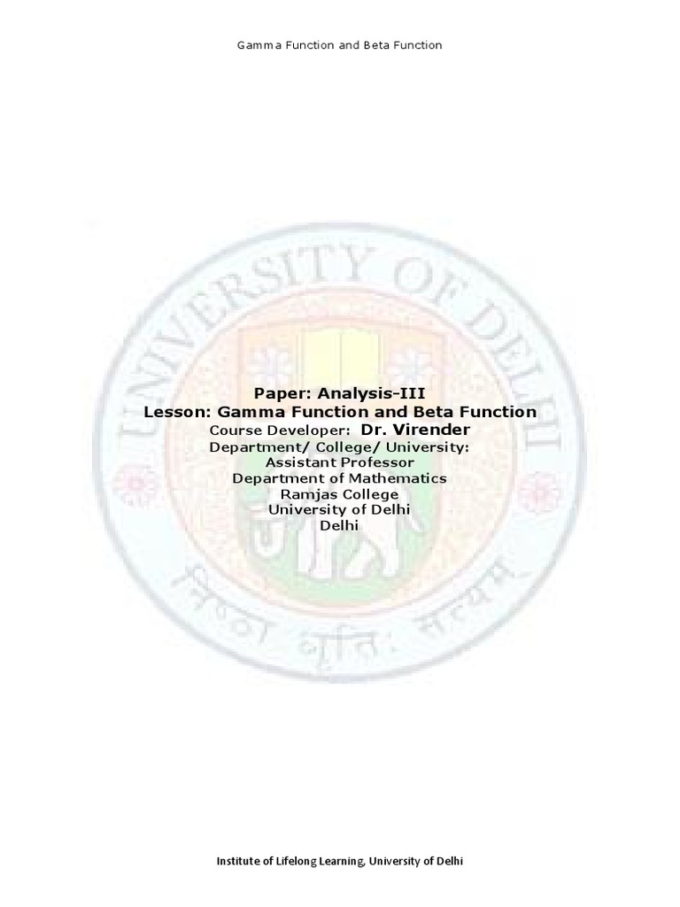 Lesson: Gamma Function and Beta Function