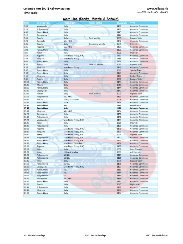 12:35 Kalutara South Saturday & Sunday 8744 Mixed Train