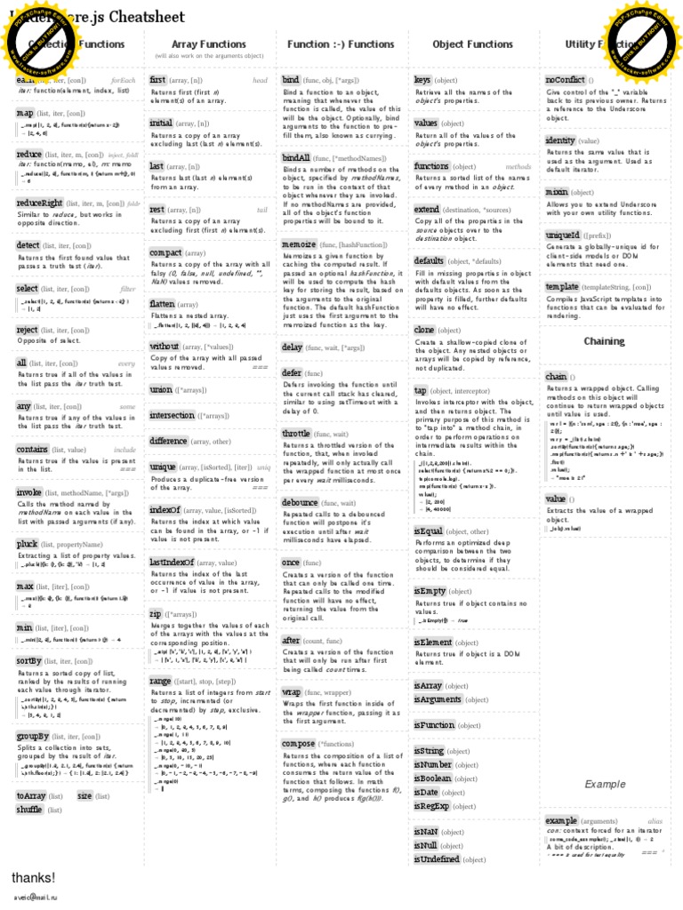 Array Functions Function :-) Functions Object Functions Utility Functions