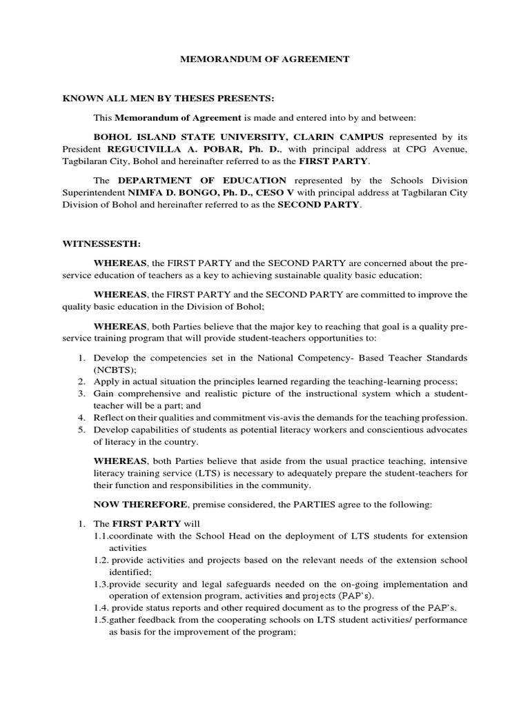 Division of Bohol and hereinafter referred to as the SECOND PARTY.