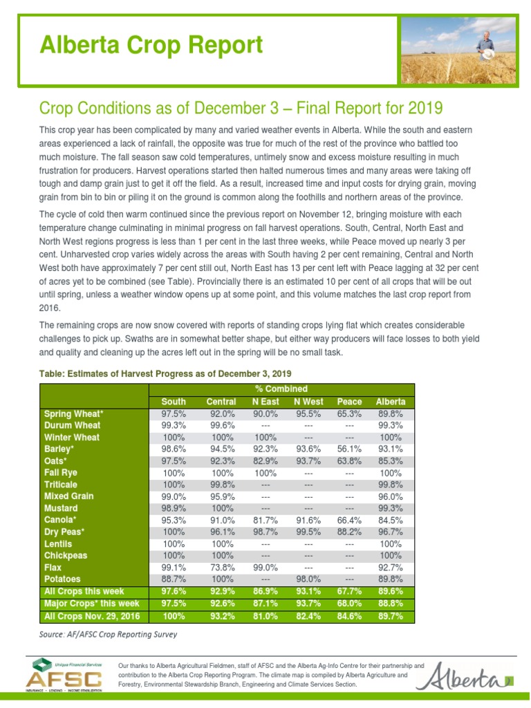 Our thanks to Alberta Agricultural Fieldmen, staff of AFSC and the Alberta Ag-Info Centre for their partnership and