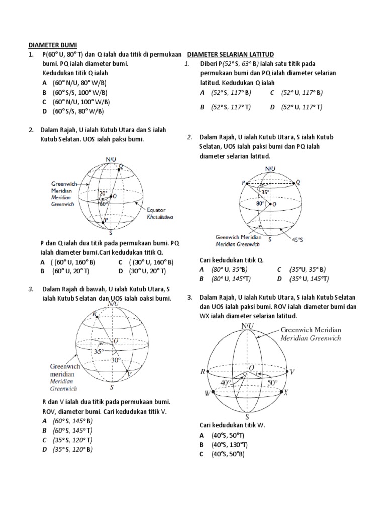 1. P(60° U, 80° T) dan Q ialah dua titik di permukaan DIAMETER SELARIAN LATITUD