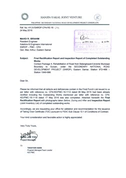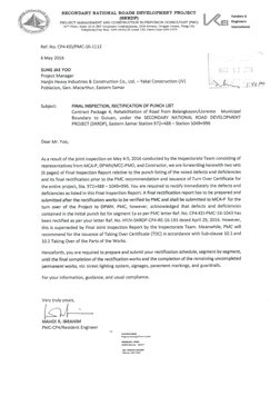 Boundary to Guiuan Road, Km. 972+488 to 1049+996, has satisfactorily complied all
